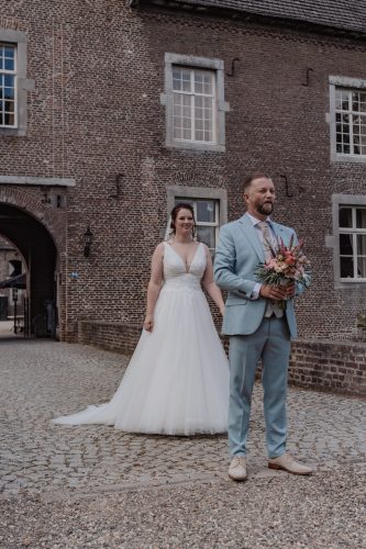 Het moment dat jullie elkaar voor het eerst zien op de grote dag… dat is er eentje hoor. Of je nu een traan laat of de slappe lach krijgt – ik leg het vast zoals het gebeurt. Geen ingrijpen, geen gedoe. Gewoon jullie, zoals jullie echt zijn, met alles erop en eraan.